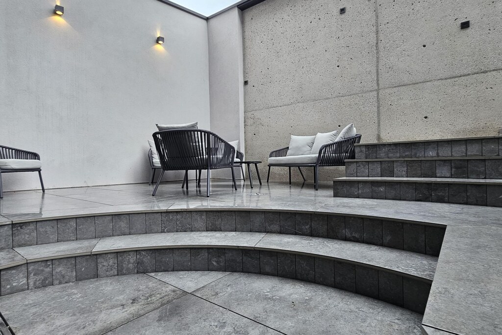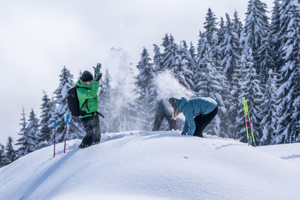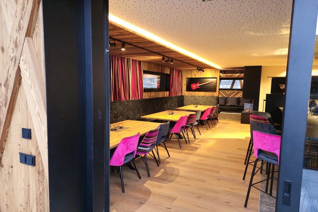 The central location of the kitchen invites you to cook and linger together. And after an eventful day in the mountains, you can relax in our padded lounge and end the evening in front of our large flat-screen TV. Experience the perfect mix of comfort and style - only in the group chalet. Special features such as an integrated cooling counter with beer tap (without beer) and a wine fridge are also available. Relaxation by the fireplace in front of one of two fireplaces, or pure relaxation in the private wellness area with your own outdoor whirlpool and sauna. Enjoy the fresh mountain air and the panoramic view from the large terrace balcony or spend sociable evenings on the rooftop terrace with barbecue area and a view over the entire valley.