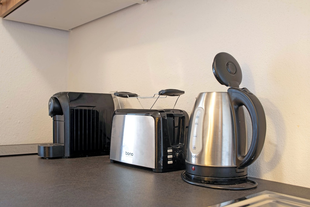 In addition to the indoor pool, a shared steam shower can be used (for a fee). The kitchenette offers you the opportunity to put your favorite dishes on the table and to end the day relaxed with a drink of your choice on the balcony. You can end the day watching TV in the living room while lounging on the sofa beds here.