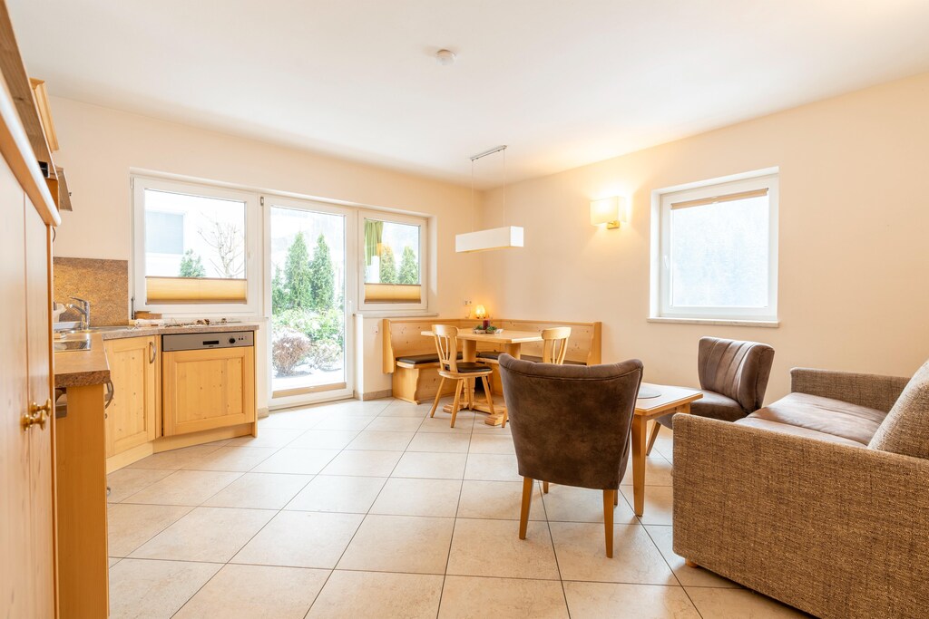 This beautifully furnished ground-floor apartment in Hollersbach im Pinzgau is perfect for couples and small families seeking a peaceful retreat in nature without sacrificing comfort. It accommodates up to four guests and offers a harmonious blend of tasteful design and a private garden – ideal for relaxing after a day in the mountains.