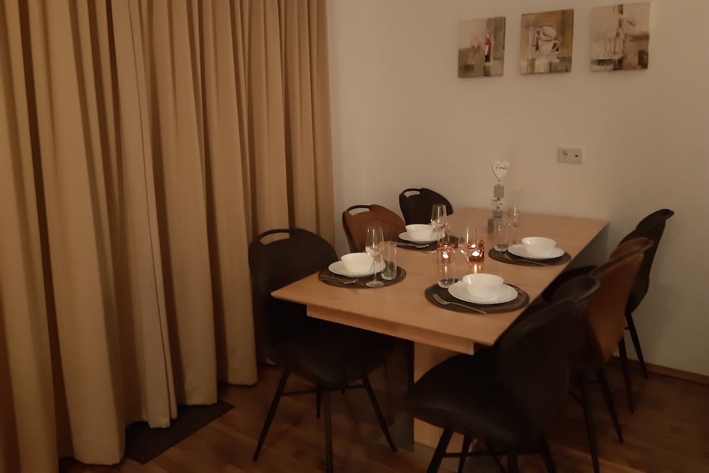 Vi havde et fantastisk ophold i lejligheden i Kaprun! Beliggenheden kunne ikke være bedre - kun en kort gåtur til skibussen og byens centrum, Lejligheden var rummelig og veludstyret, perfekt til vores familie på fire, Køkkenet havde alt, hvad vi havde brug for til at lave mad, og stuen var hyggelig til at slappe af efter lange dage på pisterne, Udsigten til Kitzsteinhorn fra terrassen var en dejlig bonus, Anbefales varmt til alle, der søger en vinterferie!