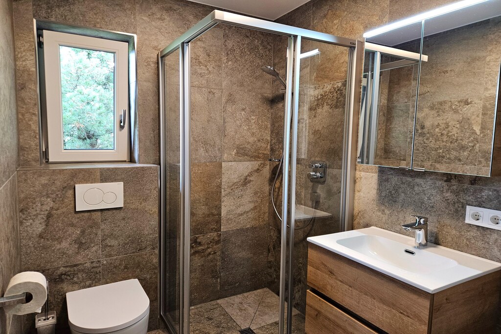 House Erika is a lovely airy, bright and very clean apartment that comfortably fitted our 5 person family. It is fitted with all necessary amenities. It isn't new but it has that lovely charm to it. Although we didnt use the big balcony i can imagine that it's just a bliss to sit there in warmer months watching wildlife. Situated at the end of the small hamlet it is about 5 km to the nearest village so the car would be useful but there is a bus stop nearby. Not sure how often the bus comes thought. The only complain would be the shower. My large framed husband found it a little claustrophobic ... And the water took some time to drain. Other than this we had a lovely time and I'm sure we will come back in the coming years. Thank you for having us x