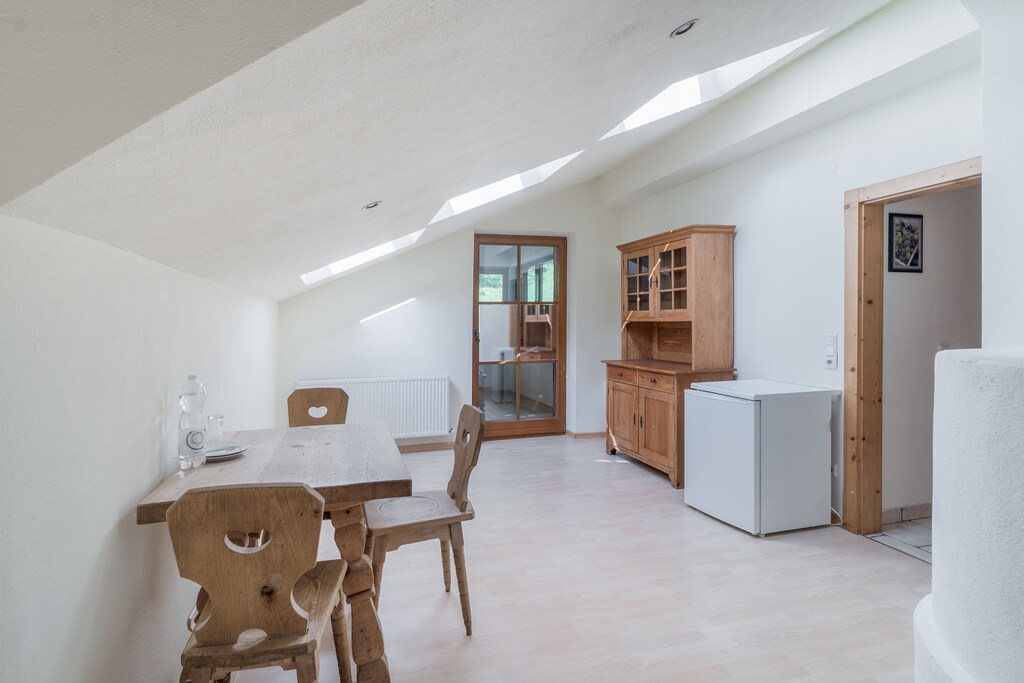 You live in a cozy accommodation, with 5 bedrooms and 3 bathrooms. From the balcony you have a beautiful view of the mountains, from the terrace you can see as far as the Schlick, home of the Kalkkögel. With good snow conditions in winter, you can even ski directly from the front door down the toboggan run into the valley. There is plenty of seating on the terrace and a grill. Since the Alm used to be hosted, there is a professional kitchen on site as well as a cozy bar with beer dispenser and a restaurant that offers more than enough space.