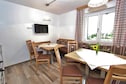 The ground-floor apartment has central heating. There is a modern living room with an open-plan kitchen, big enough for everyone to eat together. You can walk or rest in the sunshine in the shared garden. Children can romp to their hearts' content in the snow around the home. A sandpit play equipment, and table football setup is also present for kids. Parking is available.