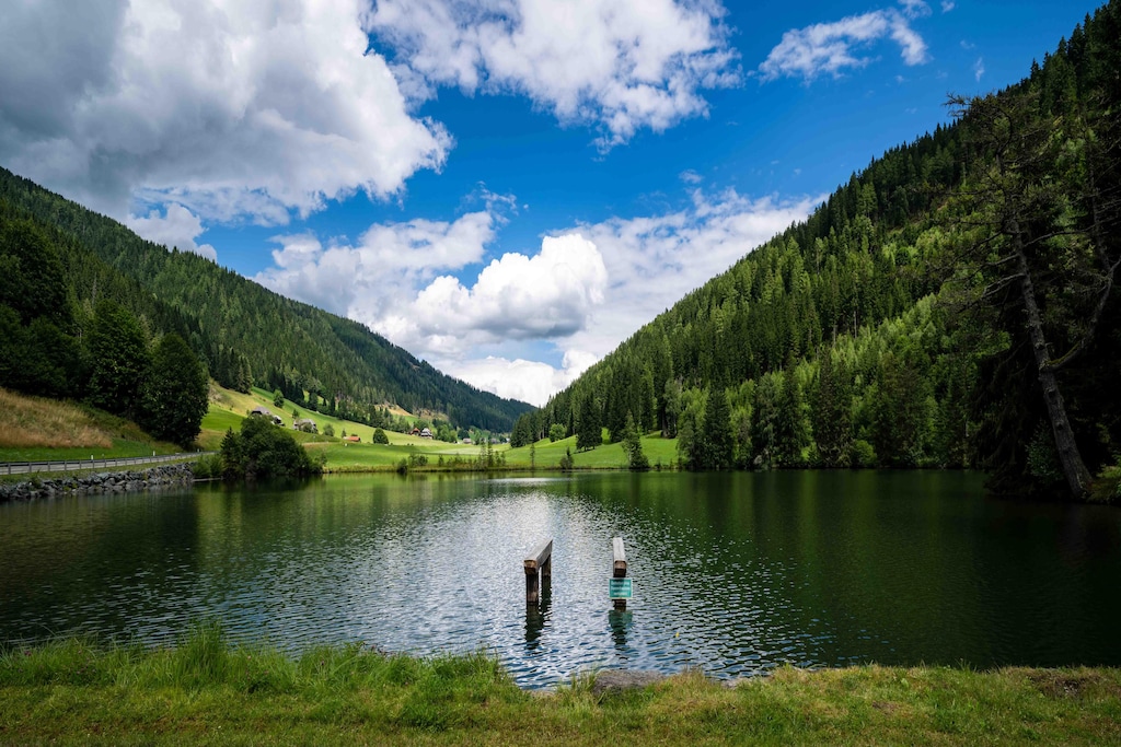 Sankt Lambrecht village provides local restaurants, a GP, pharmacy, supermarket, and an outdoor swimming pool. Nearby ski areas include Sankt Lambrecht (12 km slopes, 9 lifts, new gondola), Kreischberg/Murau (42 km), Turracher Höhe (43 km), and Lachtal (35 km). Attractions include the Abbey of Sankt Lambrecht, Murau old town, waterfalls (Günster, Graggerschlucht), and Red Bull Ring in Spielberg (30 min drive).