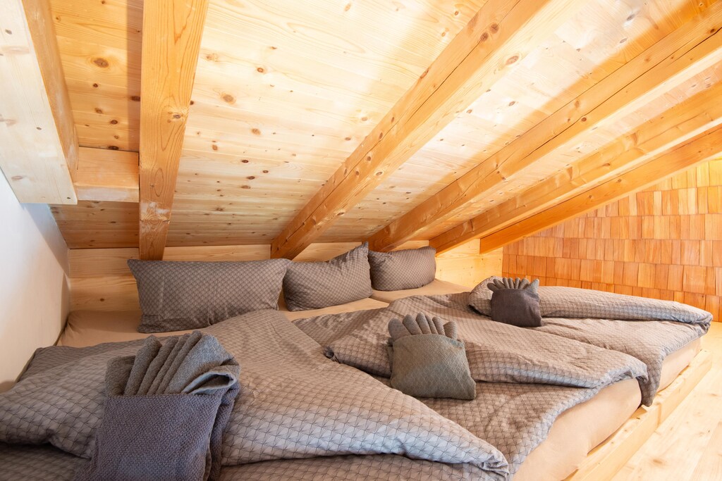 With a stunning view of the mountains: Rustic farm, newly renovated with great attention to detail. The courtyard houses the holiday apartments, which have become a comfortable holiday home thanks to their beautiful mix of modern and traditional elements. A spacious outdoor area with seating invites you to relax outdoors - there is also plenty of space for children or your four-legged friend to romp and play. And after an active (hiking) day, you can relax in the communal sauna. Incidentally, if you rent all three holiday apartments, you have the whole farm at your disposal - perfect for a holiday with friends or a large family.