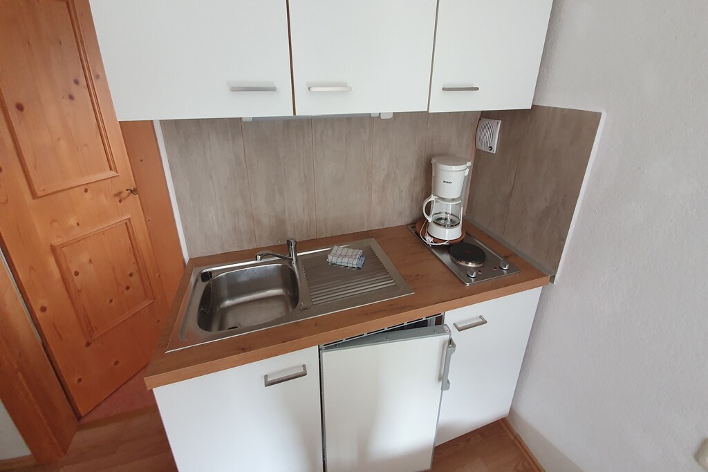 The accommodation features a bathroom with a shower, washbasin and toilet. The house has a small kitchenette with 2 hotplates and a fridge. The living room/bedroom is furnished with a double bed, a dining table and a seating area. You can end the day in a relaxing way on the balcony or terrace.