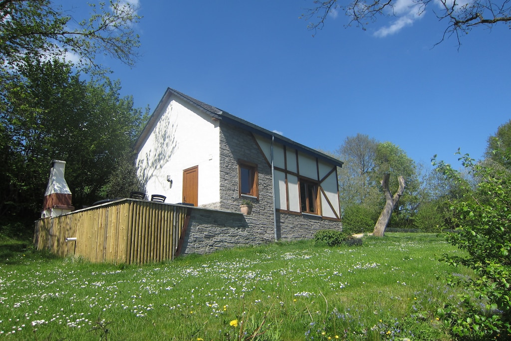 Achter het huis een mooie wandelroute langs een beekje. Van buiten een leuk huisje met een heel mooi uitzicht. Binnen was alleen minder dat er schimmel op de voegen in de douchekabine zat. En jammer dat de jacuzzi niet werkten.