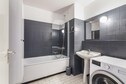 The apartment includes two bedrooms: one with a double bed and another with a unique 3-person bunk bed, making it a great fit for families. The modern kitchen is fully equipped with a dishwasher, oven, and coffee machine, while the bathroom offers both a bathtub and shower. A separate guest toilet, washing machine, tumble dryer, and WiFi add to the comfort.