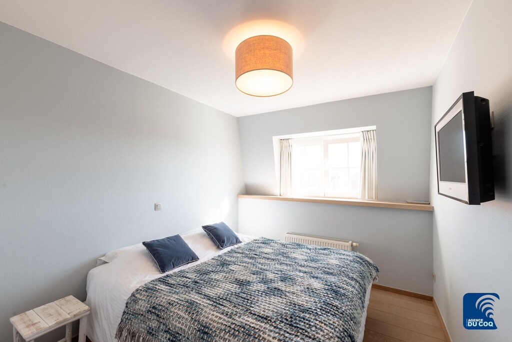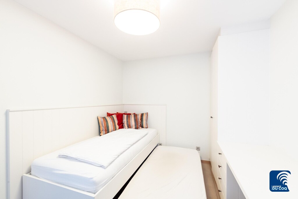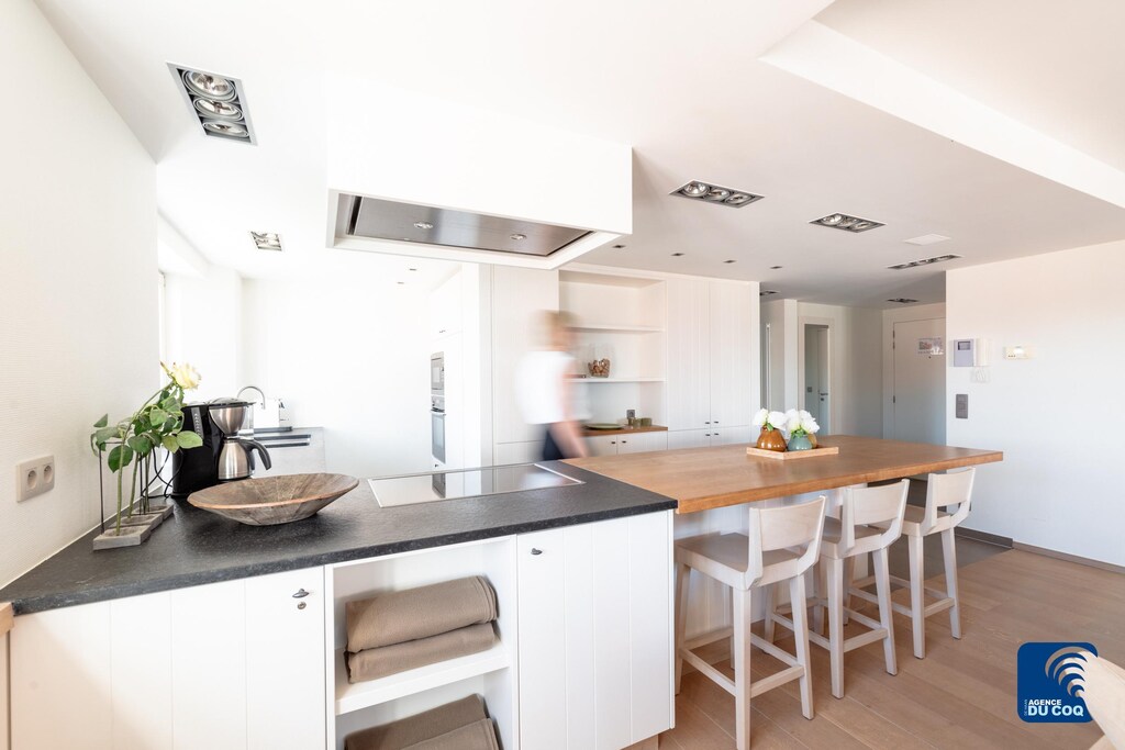 Experience timeless charm and modern comfort in this spacious apartment set within the iconic former Hotel des Dunes. This beautifully renovated 3rd-floor retreat boasts a stunning sea view, elegant designer furnishings, and serene ambiance—perfect for a quiet, luxurious getaway. With a stylish open-plan living and dining area, plus a fully equipped induction kitchen, you'll feel both pampered and at home.