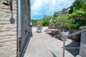 The home features a bright living room with international TV, a dining area, and an open kitchen equipped with a coffee machine, oven, and dishwasher. Upstairs, two spacious bedrooms with king-size beds ensure restful nights. A full bathroom with both a bathtub and shower adds comfort. Guests can relax on the private 15 m² terrace or enjoy meals in the outdoor veranda. Central heating and private parking complete the amenities for a comfortable stay.
