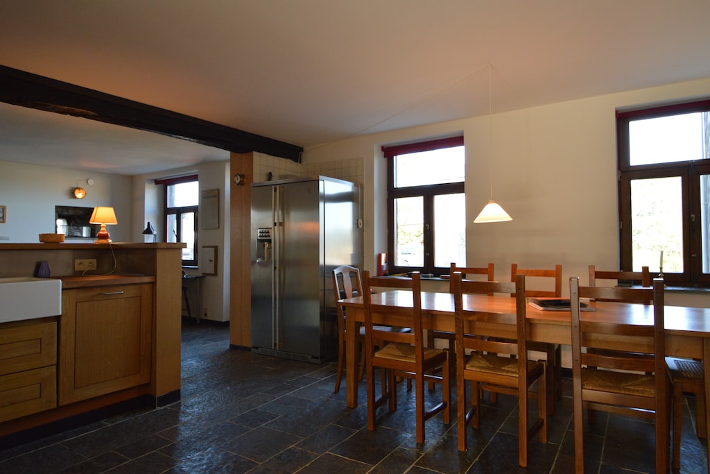 Prima vakantiewoning, waar je je meteen 'thuis' voelt. Foto's geven een goed en eerlijk beeld van de woning. Uitstekende bedden. Locatie was goed (centraal gelegen in toeristische deel Ardennen, station en snelweg dichtbij (je hebt wel een auto nodig). Badkameruitrusting luxe (zeker als de radiator is opgehangen), keukenuitrusting bijzonder uitgebreid, geweldige koelkast (veel ruimte, altijd ijsblokjes!), vriendelijke ontvangst, privacy (want de sleutelbewaarder die twee huizen verderop in het straatje woonde liet wel weten waar wij moesten zijn als we vragen hadden maar kwam zich verder niet opdringen), veel boeken, (wandel)kaarten en DVD's om te kunnen gebruiken. Gastvrije uitstraling daardoor. Minder weinig tot geen bergruimte in de keuken voor etenswaren. Dit hielp ook niet bij het voorkomen van idioot veel vliegen (ligging ook vlak bij boerderij). Betere horren/hordeuren kunnen hierbij helpen, sommige horren waren nu nog kapot. Het enige dat miste in de keuken was een magnetron. Ook een verbeterpunt betere mogelijkheden tot verduisteren van de slaapkamers. Al met al een fijne vakantiewoning waar nog een paar puntjes op de 'i' gezet kunnen worden om het de ideale woning te laten zijn.