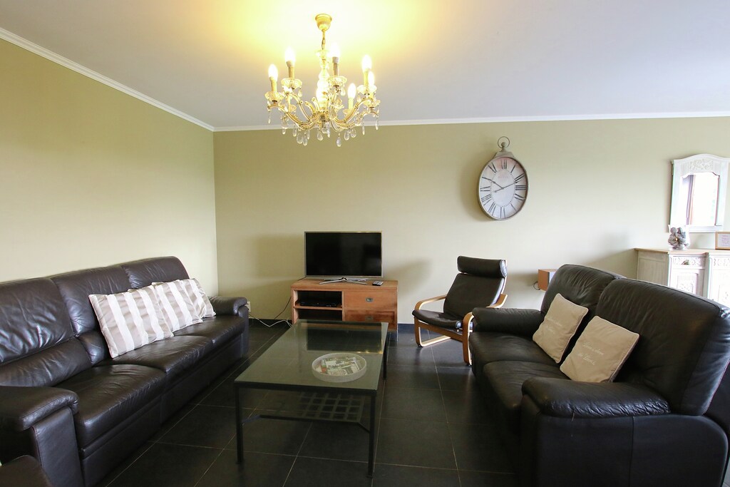 We zijn met 2 gezinnen (met oudere kinderen) en oma een weekje hier geweest. Een degelijk net vakantiehuis. De eigenaar woont in hetzelfde pand aan 1 helft, de andere helft heb je onder een verblijf en boven een verblijf. Beide verblijven hebben wel een eigen achtertuin en eigen voordeur. Je kijkt achter zo op de weilanden en bos. Elk apparaat wat je kunt bedenken staat er wel in de keuken / huisje, van gourmet set tot sinaasappelpers, wasmachine droger strijkijzer etc. Er liggen zelfs jeu de boulles ballen, diverse spelletjes en badminton rackets. De eigenaar heeft mountainbikes te huur, er liggen prachtige uit gepeilde routes om te fietsen. Er is voldoende activiteit in de buurt, denk aan survival, kano varen, vissen, kasteel van Godfried v Bouillon bezoeken. Vanaf het huisje kan je mooie wandeltochten maken. In Bertrix liggen diverse grote supermarkten. Uiteindelijk moet je het zelf gezellig maken en dat is ons hier goed gelukt.