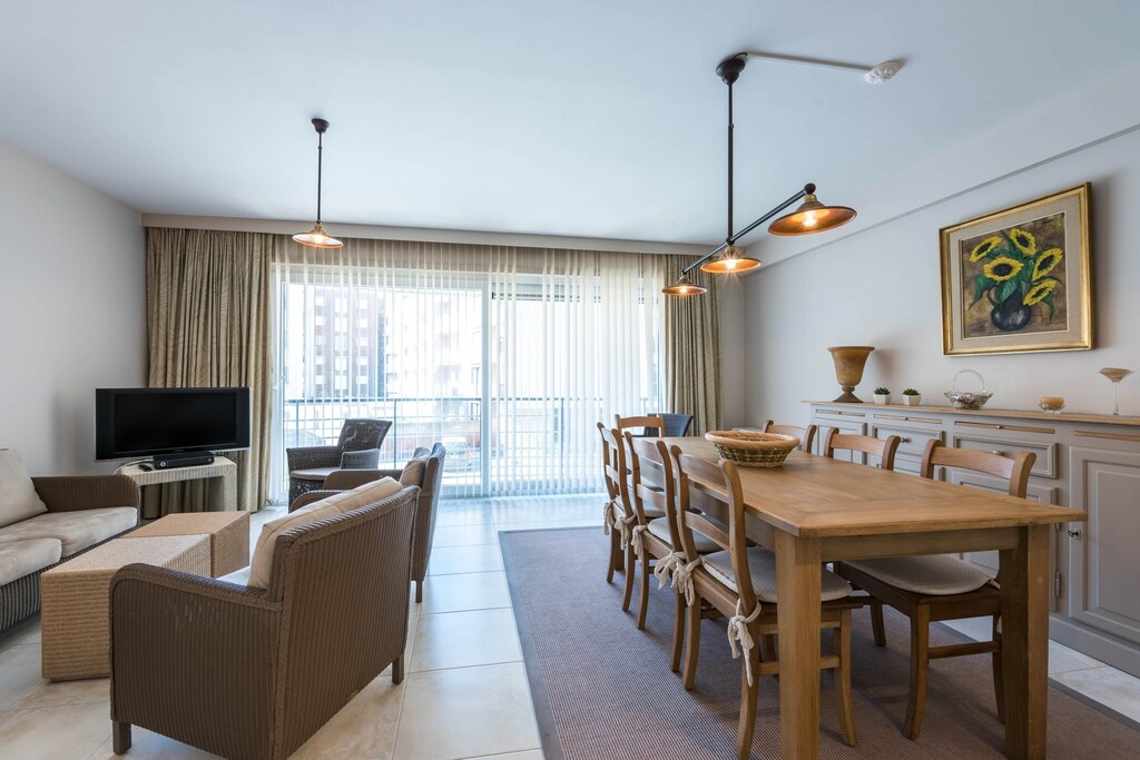 Modern apartment with oblique sea view and 20m from the seawall. Location outside the center. Pets are allowed. Garage included.