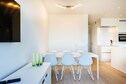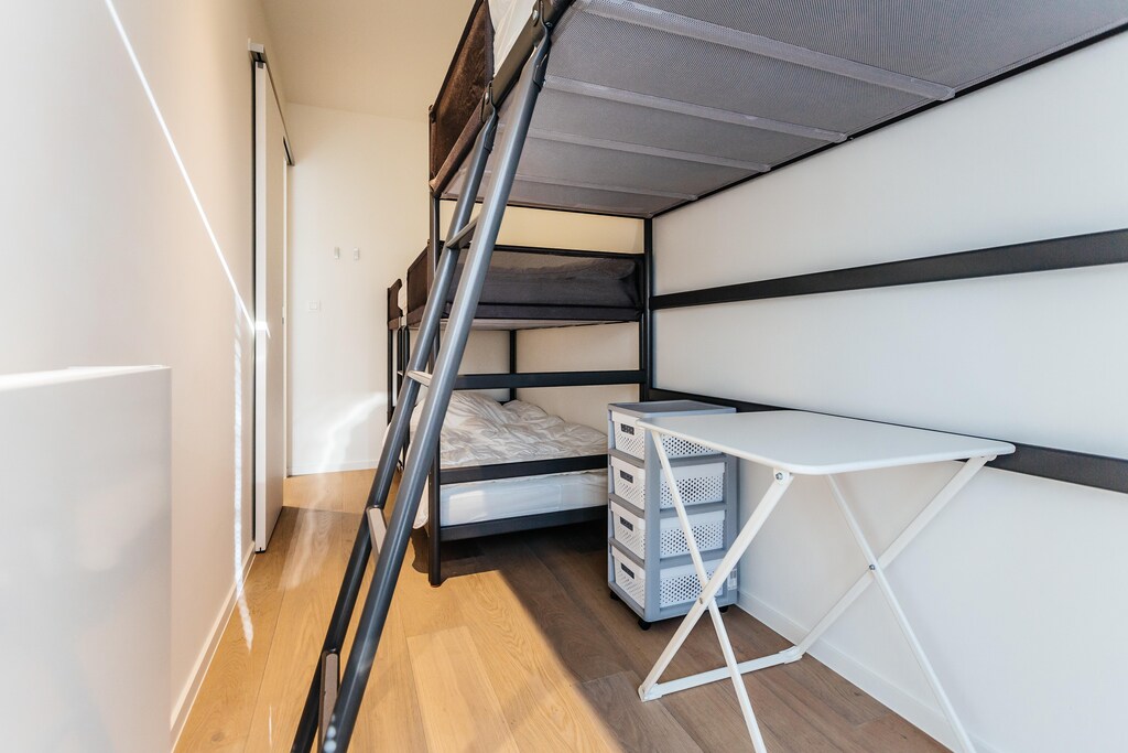 Living room with integrated, modern kitchen equipped with every comfort, bathroom with walk-in shower, separate toilet, a bedroom with a double bed, a bedroom with bunk beds and loft bed and space for a cot, extra sleeping mat or study place. Balcony on the sea side and balcony on the bedrooms.