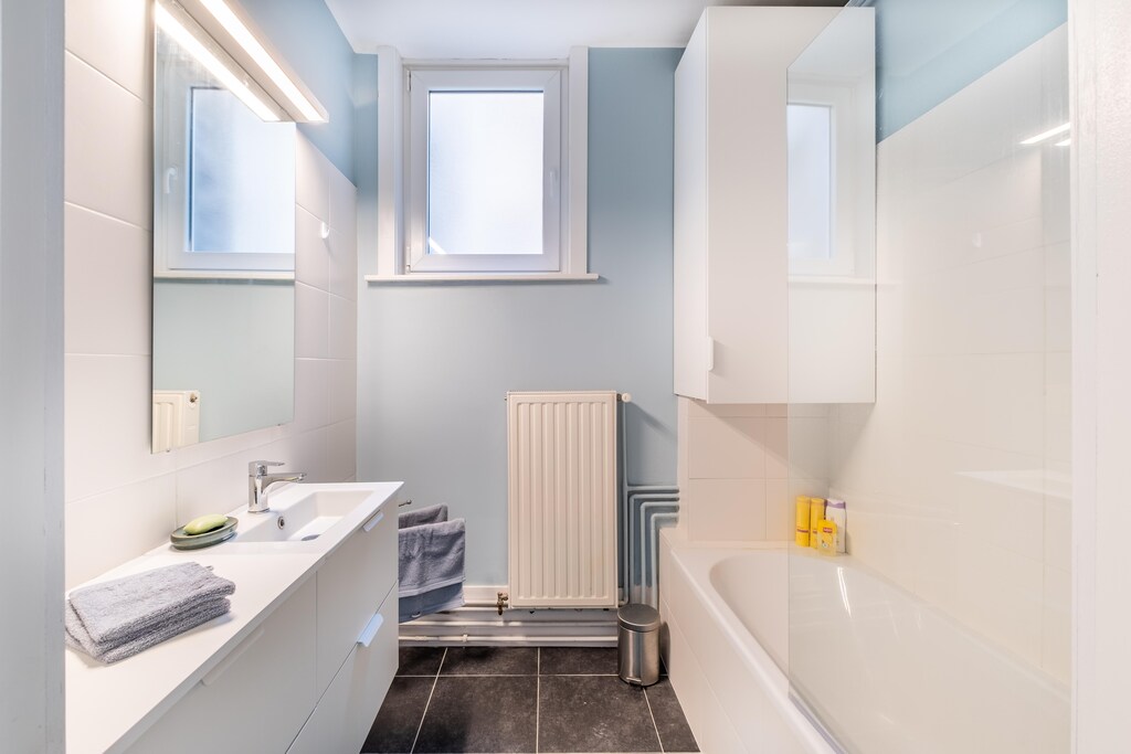 Inside, the separate kitchen is fully equipped with modern appliances including a ceramic hob, oven, microwave, dishwasher, fridge-freezer, espresso and filter coffee machines, toaster, and hand blender perfect for preparing meals at home. The large bedroom offers both a double bed and a bunk bed, while the bathroom includes a bathtub with shower. A separate toilet and entrance hall add to the convenience.