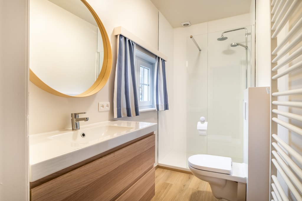 The villa has an entrance hall with separate toilet, renovated kitchen with all comforts, living room with TV, bathroom with shower, bedroom with 2 single beds, upstairs: 3 rooms with double beds. In 3 rooms there is a sink with cold water.
