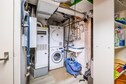 A bedroom without a window with a bunk bed. Through this room you have access to the storage room with fridge with freezer compartment (3 drawers), washing machine, dryer and other cleaning equipment.