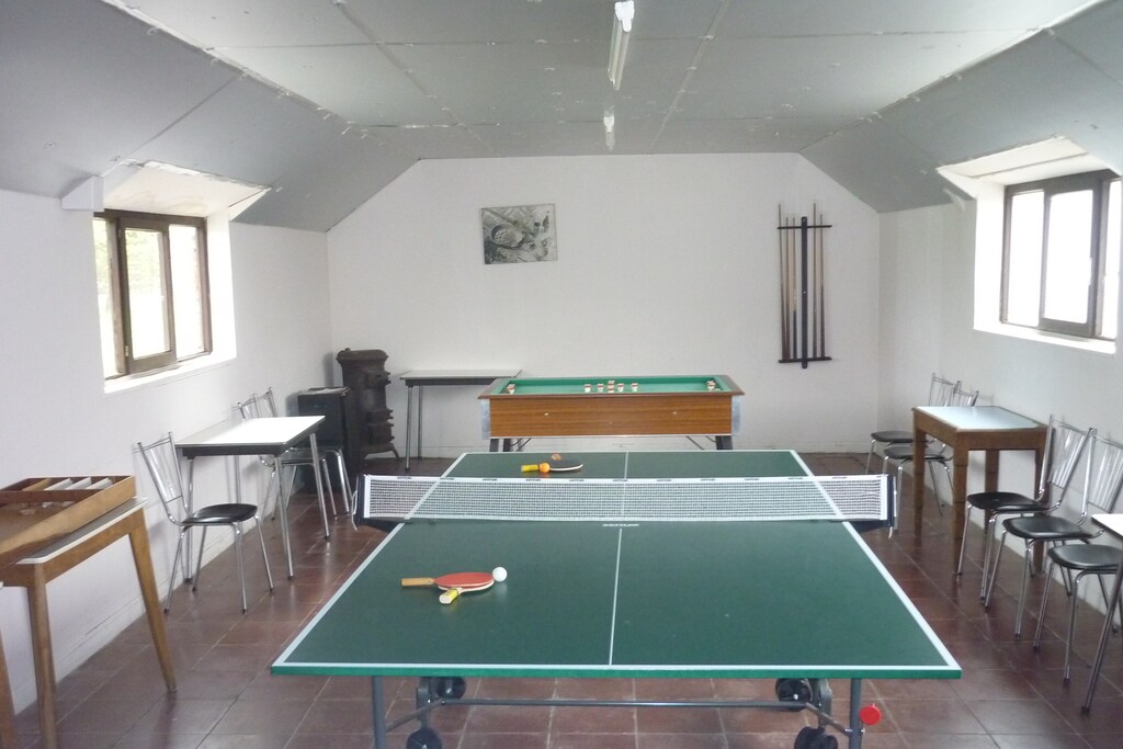 Leuke plek, een vroegere café die omgebouwd is als logeerplek voor grotere groepen. Alle noodzakelijke benodigdheden waren er, mits wel wat verouderd. Pluspunt is het oude zaaltje die nu dienst doet als ontspanningsruimte met een tapbiljart en pingpongtafel. Er was ook een sjoelbak, maar de schijfjes waren verdwenen 😔. Super aangename mensen die het huis verhuren.