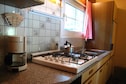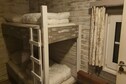 The ground floor features a cozy living room with a gas stove, satellite TV, and radio. The kitchen is equipped with a 4-ring cooker, microwave, and filter coffee machine. There’s a double bedroom, a bunk room, a bathroom with shower, and a separate toilet with washbasin.