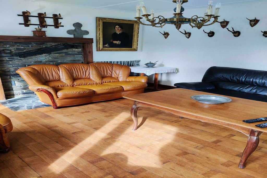 Een heerlijk plekje, zeer vriendelijke eigenaar, huis op orde en schoon, grote afgesloten tuin voor de honden, en een mooie omgeving met weidse uitzichten, bos met vele beken en mooie wandelingen in de omgeving te maken. Met de schemering de vleermuis die rond het huis vliegt, ook altijd prachtig. 's Avonds de open haard aan. We zijn hier nu al verschillende keren geweest en hebben het altijd naar ons zin hier. Natuurlijk zijn sommige dingen wat verouderd maar er is al veel opgeknapt de laatste jaren en verder heeft het huis veel authentieke elementen die het heel sfeervol maken. Weer een heerlijk verblijf gehad.