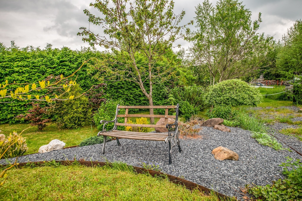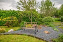 The fully equipped kitchen includes a ceramic hob, oven, microwave, dishwasher, and blender, ideal for preparing meals to enjoy on the private terrace or in the garden. Additional amenities include a double sofa bed, cot, high chair, outdoor fireplace, barbecue, and bicycle storage. The fenced garden with pond and garden furniture offers a tranquil space for outdoor dining and play.