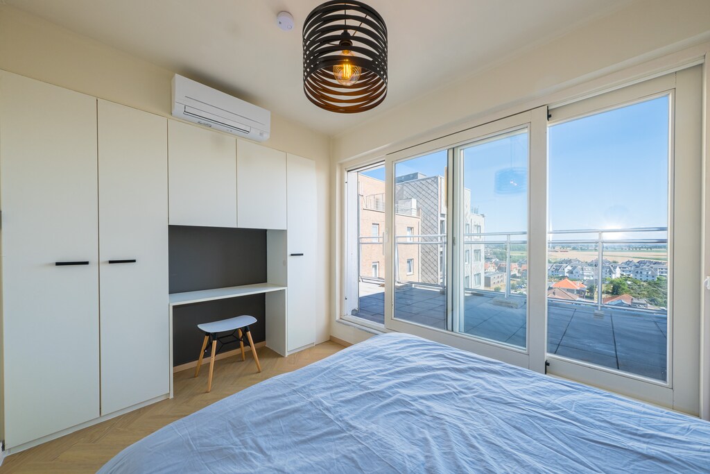 Experience ultimate luxury in this breathtaking penthouse on the 8th floor, the most spectacular apartment in Middelkerke, featuring phenomenal sea views and a private rooftop terrace that showcases the sunset in all its glory. This unique and fully renovated gem offers 2 spacious bedrooms, each with comfortable double beds, combining elegance, comfort, and an unbeatable location on the seafront. The bright and spacious living room boasts floor-to-ceiling windows providing a stunning panorama of the sea and direct access to the expansive rooftop terrace, perfect for enjoying a cocktail at sunset. The bedrooms also open onto a sunny terrace. The modern open kitchen, bathroom with walk-in shower, and separate toilet complete this luxurious retreat. The penthouse is equipped with air conditioning, and the lift takes you to the 7th floor, with a few elegant steps leading to this exclusive pinnacle of luxury. For added convenience, a garage is included in a nearby building. Located in the heart of the seafront, close to shops, restaurants, and public transport, this penthouse offers an unparalleled combination of privacy, comfort, and spectacular sea experience. A stay here is nothing short of a dream holiday on the Belgian coast. Wifi: yes - garage: included - sheets: bring your own - towels: bring your own.