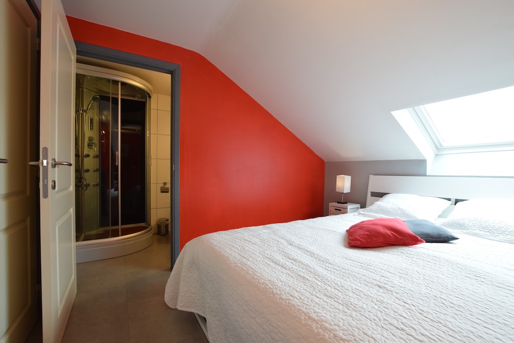 Leuke vakantie! Met ons 15 ( een 70 plusser, zeven 40 plussers en zeven 7 schatten van kleinkinderen tussen de 13 en 17 jaar) hebben wij niettegenstaande het slechtste weer in 18 jaar een toffe vakantie gehad, ondanks de regen en de lage temperaturen zijn we toch op stap gegaan, zelfs kajakken bij net geen 10 graden C voor de meeste onder ons! Ruin huis , sportruimte, zitruimten en ruime keuken. Corecte afrekening voor het verbruik je kan altijd je verbruik voor water, verwarming,,elektriciteit en WiFi aflezen. Als er dan toch een minpuntje moet zijn de architect die de trap ontworpen heeft mocht nooit zijn diploma behaald hebben.. De treden zijn te smal en de leuningen zijn te laag geplaatst.