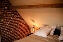 Mooie, ruime woning met goed uitgeruste keuken. Het slaapgedeelte is te bereiken langs een metalen trap in het keukengedeelte. Ruime kamer in het dak. Aan de zijkant is het plafond en vooral de draagbalk vrij laag, en dus gevaarlijk om uw hoofd te stoten. Wat ons vooral stoorde, was de krakende vloer. Het is onmogelijk om in en uit de slaapkamer te gaan zonder de partner wakker te maken.