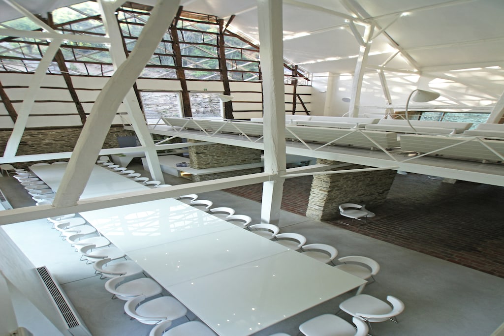 The home boasts a stunning dining room designed to make every meal memorable and a large living area perfect for the entire group to relax. The unique labyrinth of corridors leads to beautifully lit bedrooms and bathrooms, blending style and comfort seamlessly. Outside, a large garden and pond offer peaceful spots to unwind.