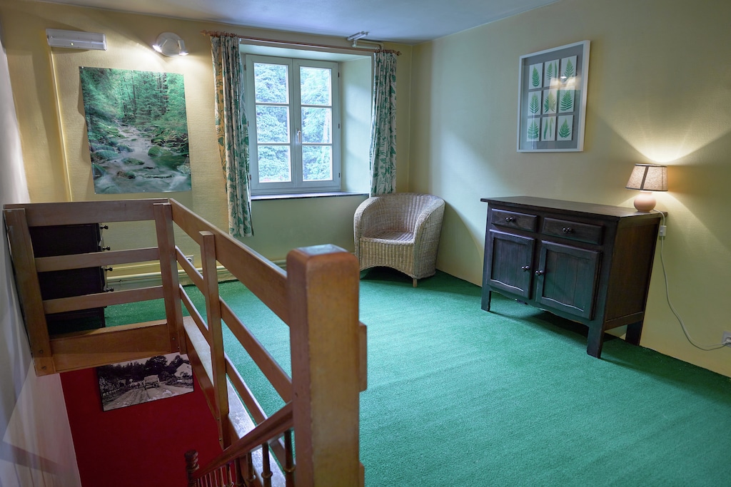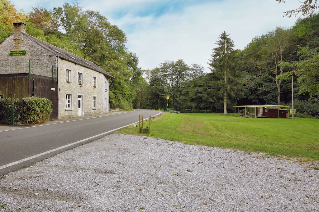Inside, the home features central heating, a cozy sitting room with fireplace, a verandah for shared meals, and a well-equipped kitchen. Please note: groups of youngsters, student parties, and loud gatherings are not permitted. A tranquil and spacious retreat in the heart of the Ardennes.