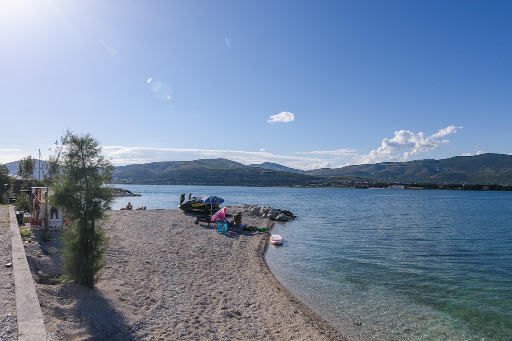 Explore the impressive Diocletian’s Palace in nearby Split or admire the beauty of the Cathedral of Saint Domnius, both must-see historic sites. For dining, savor grilled specialties at Restaurant Mali Raj, or indulge in fresh seafood at Konoba Mlinice, known for its traditional charm. Whether you're relaxing by the sea or exploring the Dalmatian coast, this Arbanija apartment is the perfect base for your holiday.