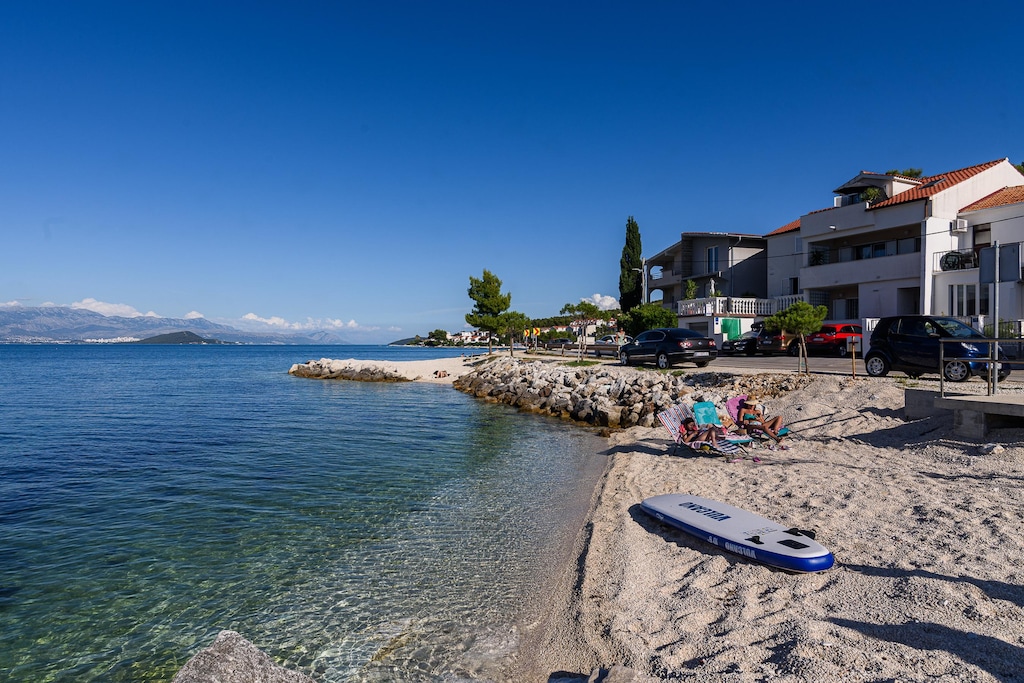 Escape to a peaceful coastal haven in Trogir - Arbanija with this pet-friendly apartment for six, located just 10 meters from the beach. Set in a serene seaside neighborhood, the apartment offers effortless access to the clear Adriatic waters and is only 4.5 km from Trogir’s UNESCO-listed old town, ideal for discovering historic streets, cultural gems, and a vibrant local atmosphere. Restaurants, shops, and public transport are all nearby, making your stay convenient and stress-free.