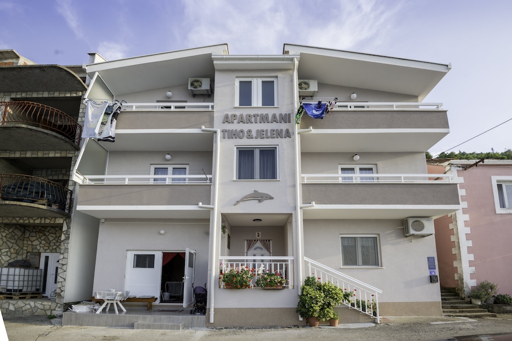 Sehr ruhige und schöne Lage, \nDirekt am Meer mit privaten Strand, \nMit privaten Parkplatz, \nSaubere Wohnung, sehr freundliche Familia Tiho und Jelena, \nWir empfehlen diese Apartments und wie kommen wieder