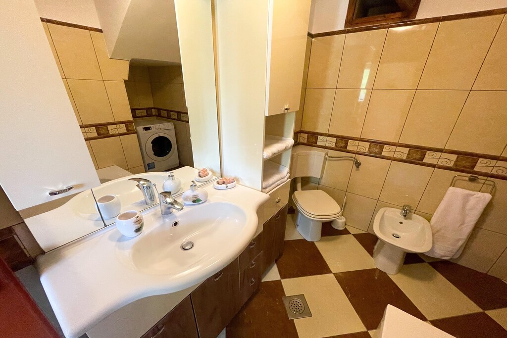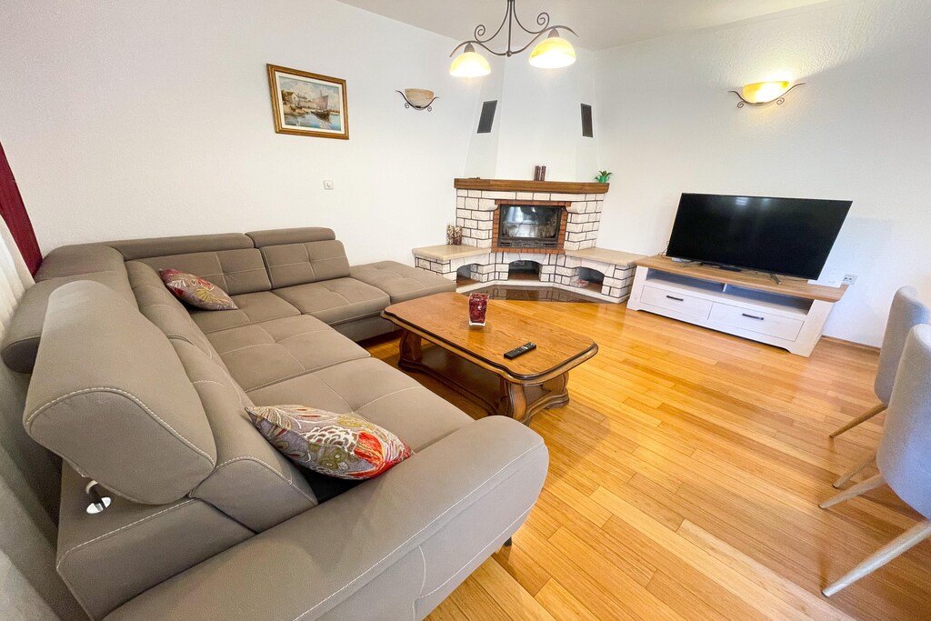 This elegant villa in Drivenik accommodates up to 10 guests across four bedrooms, each with its own bathroom. The ground floor features a cozy living room with a double sofa bed, a dining area, and a fully equipped kitchen. A private terrace and fenced courtyard offer peaceful outdoor lounging, while amenities like air conditioning, satellite TV, and free WiFi ensure a comfortable stay.