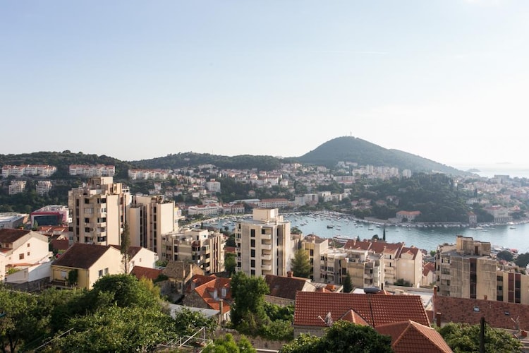 Guest House Barbara features a spacious terrace with panoramic views of Gruž Bay and stone outdoor fireplace.