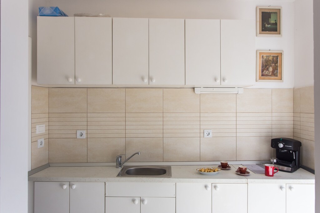 Living room includes a sofa, the kitchen is fully equipped and comes with dining ares. The apartment has a private bathroom with shower and washing machine.