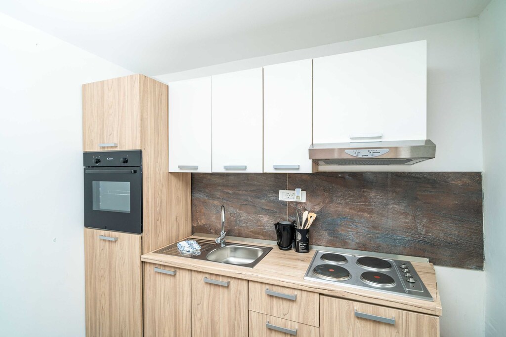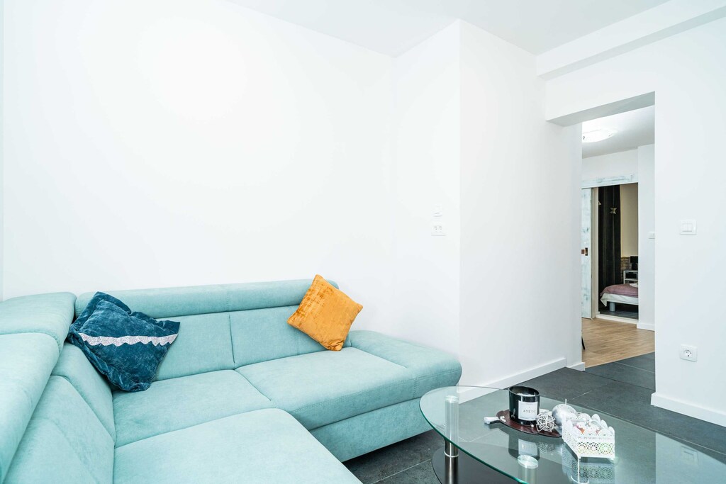 Grocery store, bus station, restaurants, bars and cafes can be found in 400 meters range, as well as bakeries and ATM's. Nearest beach is 350 minutes walk from the apartment.