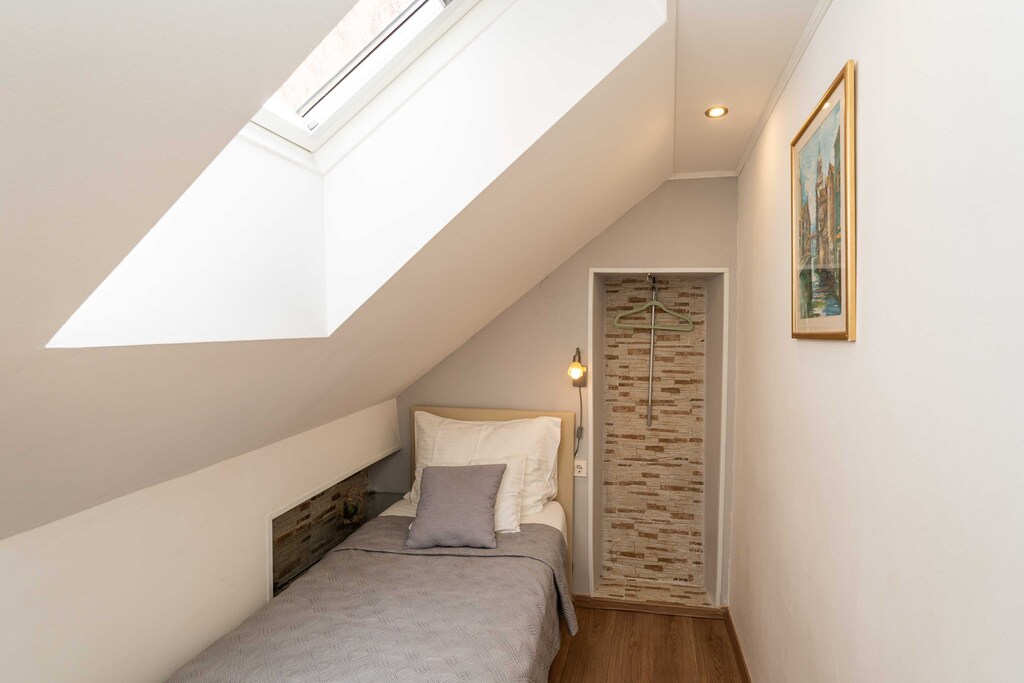 The apartment is at the attic of the house, Very much space and so very, very clean, You feel like home, Everything you need is in the house, The location is in a small street, nearby the mainstreet, Super!