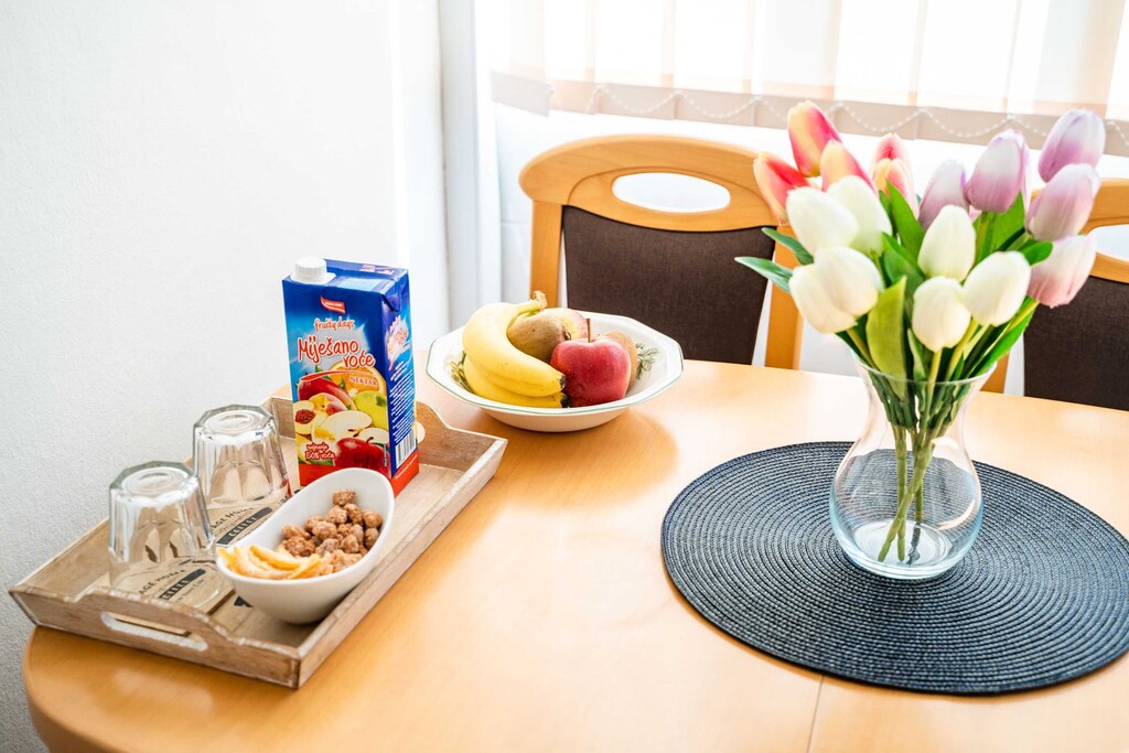 Accueil très sympathique, avec le petit plus d',une corbeille de fruits et de boissons chaudes et jus pour le petit déjeuner, ce qui est vraiment très appréciable, L',appartement est situé à proximité de petits commerces d',alimentation, ce qui est pratique et seulement à 10 minutes de marche de la vieille ville de Dubrovnik, La place de parking attitrée est un plus également, Nous recommandons vivement !