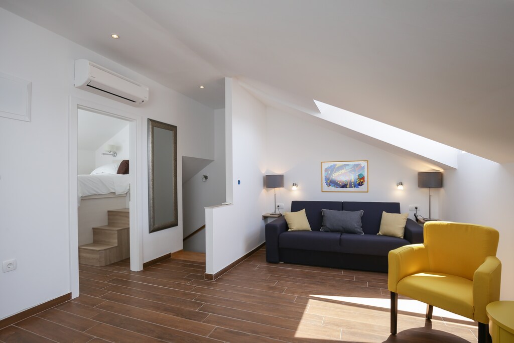 Apartment will provide you with double bed, double sofa bed, kitchenette with dining area and a private bathroom with shower. Kitchenette includes microwave, fridge, toaster and water kettle. Apartment also features air conditioning, SAT LCD TV, hairdryer and ironing facilities. This apartment will provide you with a lovely balcony with sea view.