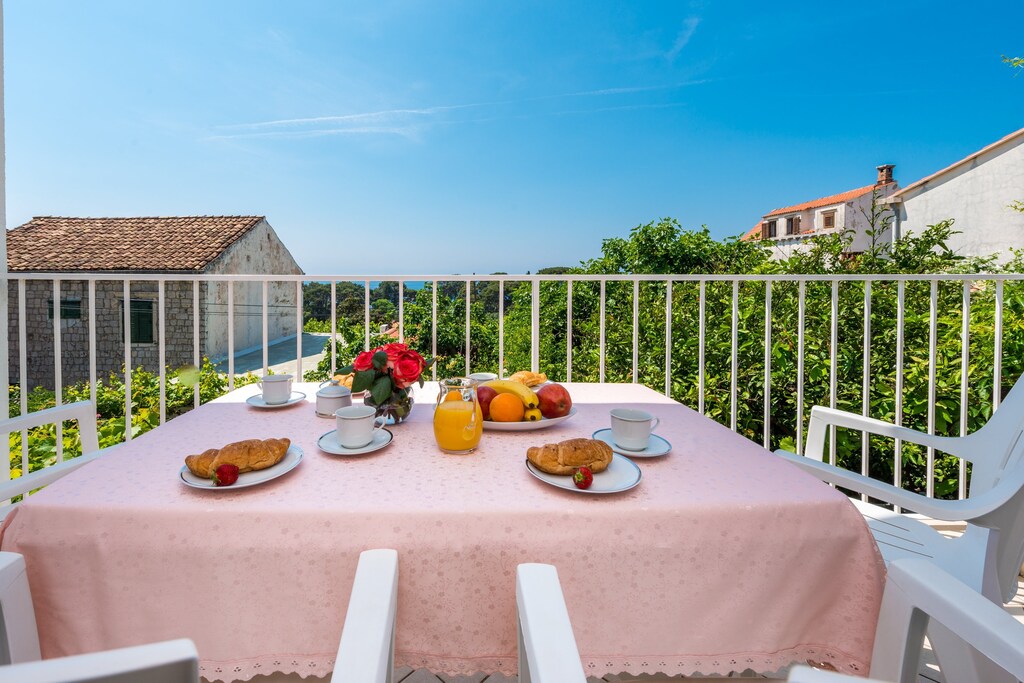 Great value for money, Excellent for family vacationApartment is really close to the beach and old town, just 5-10 minutes walk (down the stairs), It is very spacious and sunny in the morning, Big terrace overlooking the garden and in distance view of the sea, Great for breakfast and late dinner, Spacious living and dining room combined in one with air con, Two big bedrooms and one small for a single person, with bathroom and second toilet are enough even for bigger groups, There are fans in every bedroom, Everything was clean and owner provided us lots of towels and toiletries, Owner (Mrs Jelena) provided us coffee, cold water and some juices, and she was available all the time,