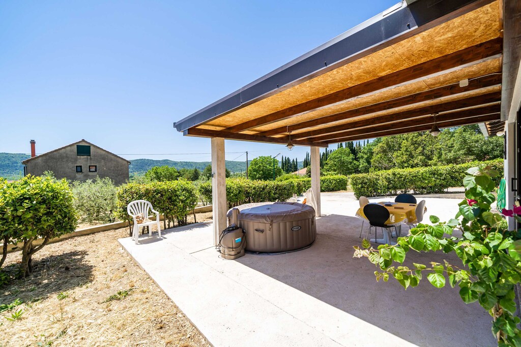 Peaceful and beautifulWe had the whole upper floor, this included 3 bedrooms and a full kitchen diner,\nHosts were lovely, they left us wine, brandy and snapps in the fridge,\nThe hot tub is up the garden and private with another kitchen diner type building to ourselves,\nSer in beautiful rural wine country,