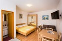 This premium studio apartment features extra large double bed and single sofa bed. Flat screen cable TV, air conditioning and free WiFi are provided. Kitchenette is equipped with refrigerator, kettle, stove and dining area. Studio features private bathroom with shower, toilet, hair dryer and free toiletries. Guests will have access to shared furnished terrace with BBQ facilities and outdoor dining area and football field.