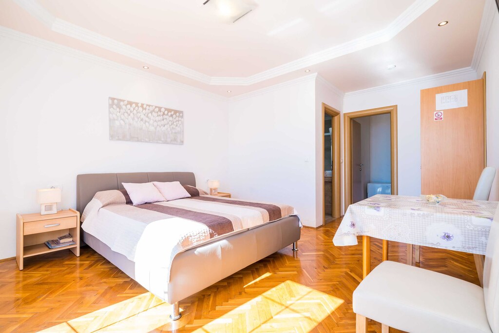 This lovely studio apartment is perfectly fit for up to two people. It features free WiFi, air conditioning, SAT LCD TV as well as a equipped kitchen and a private bathroom with shower. Furnished balcony overlooking the Adriatic sea is at your disposal.