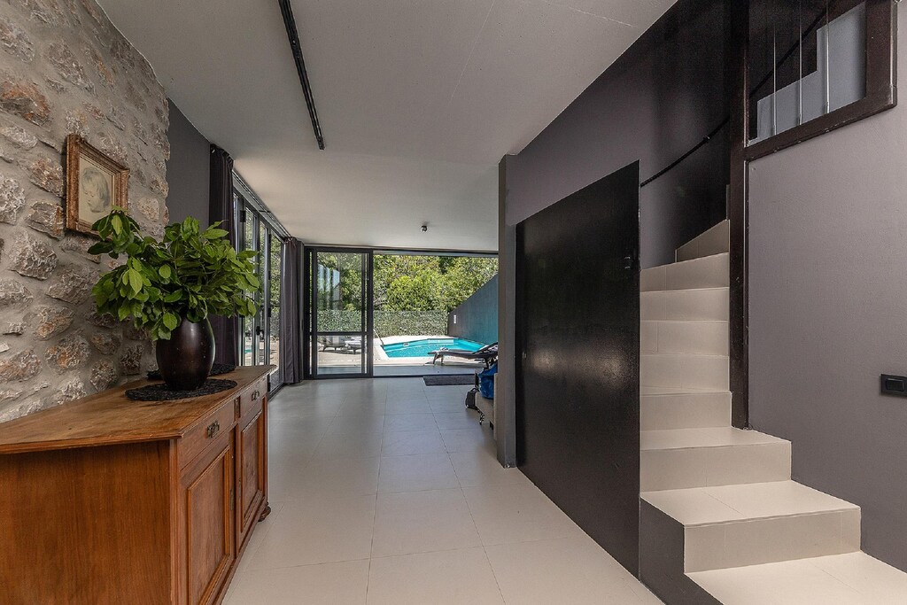 The interiors of the home are tasteful and very modern! The living room offers the wonderful views of the pool. Prepare tasty meals in the well-equipped kitchen and relish them at the dining table. Every nook and corner of the house is crafted with great detail. So, rejoice! This is best for spending vacation in a lavish style.
