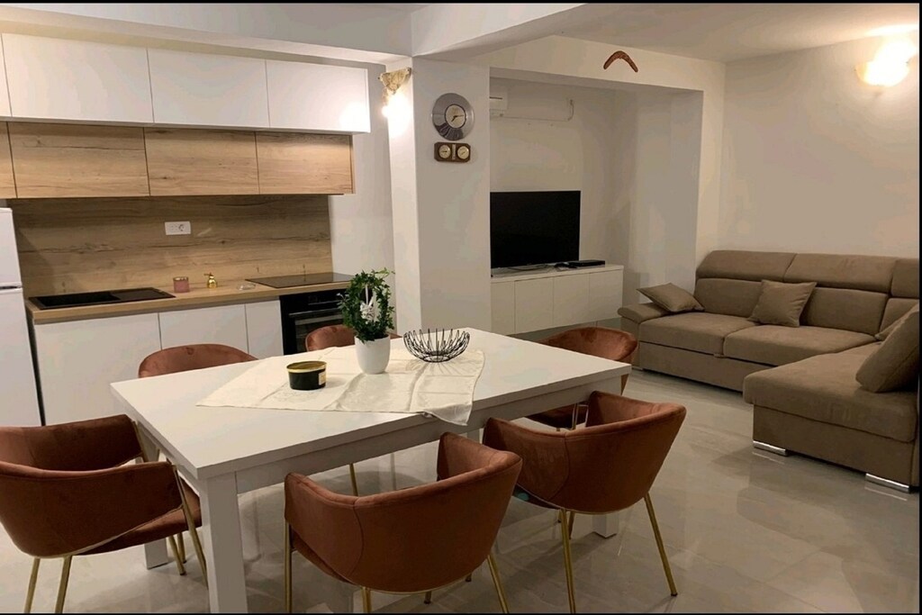 It features free WiFi, air conditioning, flat-screen TV, and satellite TV channels. Kitchen is equipped with stove, refrigerator, oven and a water kettle. Dining area, as well as the living area are at guests disposal. Bathroom is equipped with a shower.