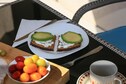 Inside, the apartment features a comfortable living room with a flat-screen TV, a fully equipped kitchen with oven, coffee machine, and fridge-freezer, and a private terrace for relaxing or dining outdoors. Air conditioning, heating, and a washing machine ensure year-round comfort. A barbecue is available for alfresco meals.