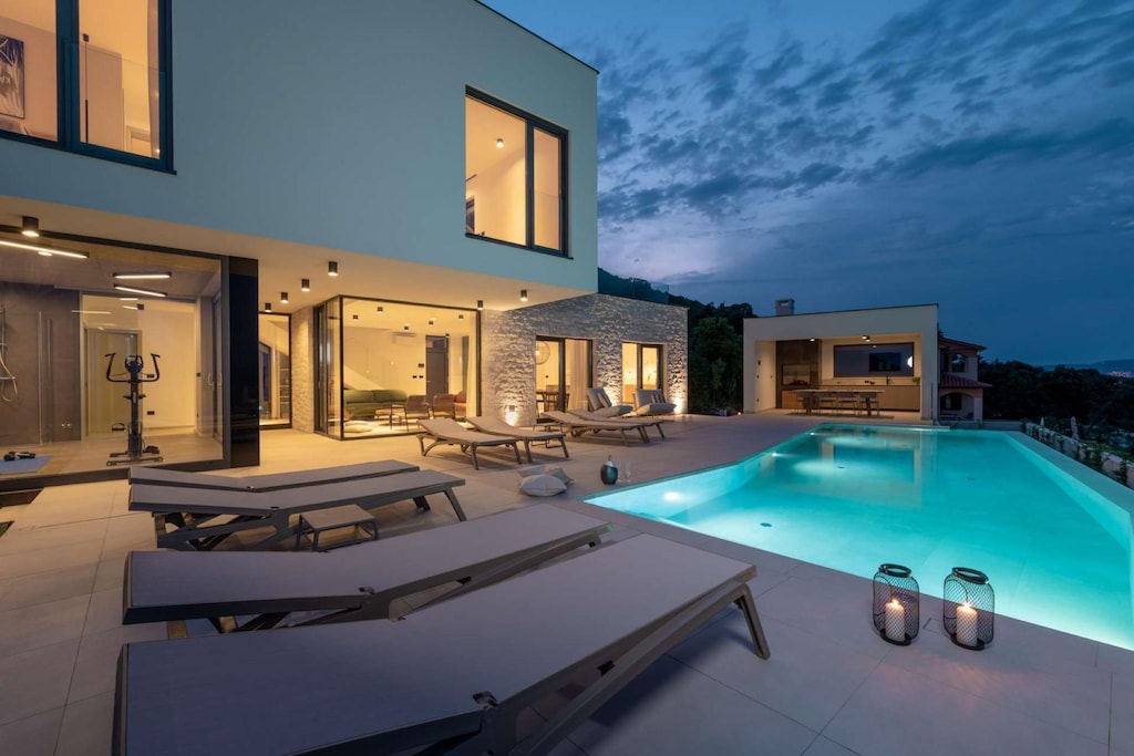 Perfect for large families or groups, this stunning villa in Labin, Istria offers a private outdoor pool, sauna, and fitness area for total relaxation. Start your day with coffee on the spacious terrace, enjoy breakfast in the garden, or unwind after a swim. The villa also features a TV with streaming services for cozy evenings indoors.