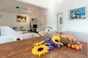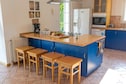 Inside, the villa boasts a chic living and dining space with a smart TV, satellite channels, and streaming options. The open-plan kitchen is fully equipped, and the four inviting bedrooms, three with double beds and one with twin beds, ensure restful nights. Step out to the private terrace, enjoy the outdoor pool, or spend time in the playroom with fitness gear and toys. Practical features include air conditioning, a washing machine, and a sun shower.