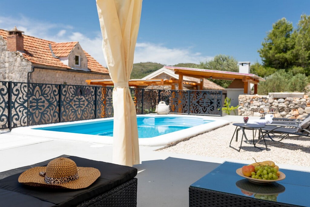 Stone House Prapatna is a 6000 m² secluded and quiet estate on the southern side of island Korčula, offering an authentic and relaxed Mediterranean ambience. The stunning view over the Adriatic Sea is complimented by the inland olive groves and vineyards. The estate comprises of two houses; the original house dating back to 1652 which is included in the national heritage registry, and the newly built house. The original house has been refurbished to blend the modern design with an authentic 17th century setting. The second, newly built house, was built following an authentic architecture with a modern interior design.